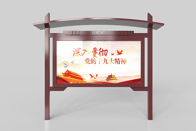 宣傳欄是一種VI應(yīng)用,是組織或企業(yè)單位等進(jìn)行自我宣傳的有效手段,常被應(yīng)用于街道,工廠等公共場所;一般采用不銹鋼為框架,鋼化玻璃或者耐力板為面板,鋁合金為頂棚,面板可以打開更換宣傳畫面?,F(xiàn)如今,宣傳欄廣泛應(yīng)用于學(xué)校、小區(qū)、會(huì)議館、展廳等各個(gè)場地。