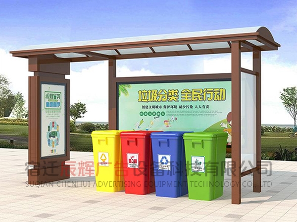 垃圾分類亭一般放在小區(qū)或者公共的地方集合垃圾之用。同樣的材料也可制成配電房、報(bào)亭、崗?fù)?、景區(qū)休息室等。宿遷辰輝廣告設(shè)備科技有限公司,我們的產(chǎn)品豐富多元化,應(yīng)用場景廣泛,也可以根據(jù)客戶的需要來圖定做。